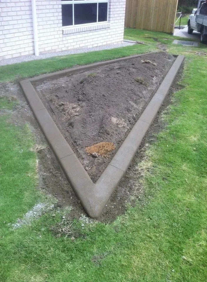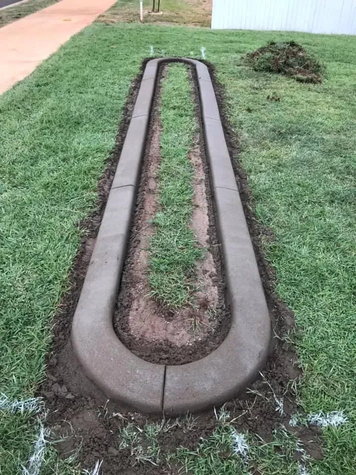 Concrete edging provides clean landscape borders, prevents grass from spreading into garden beds, makes mowing easier, and adds a professional finished look to your yard.